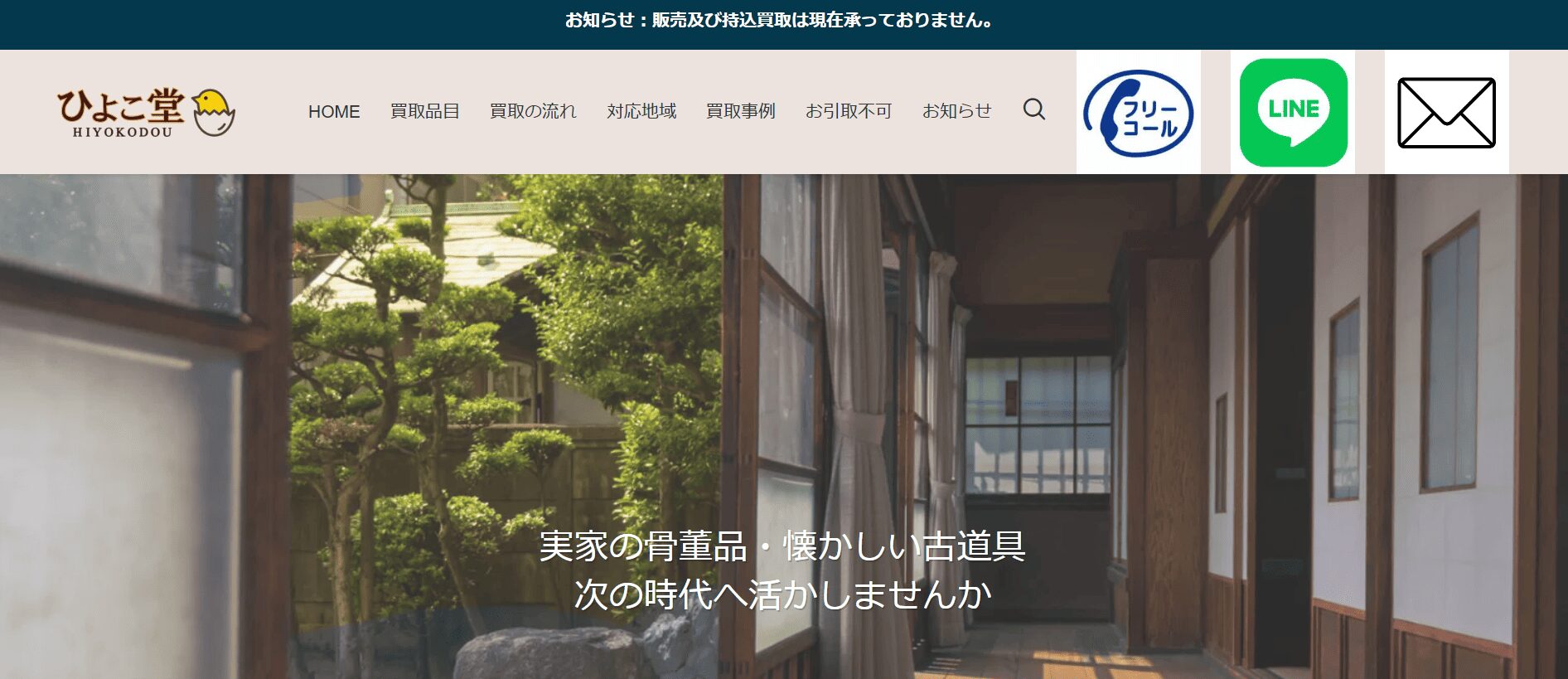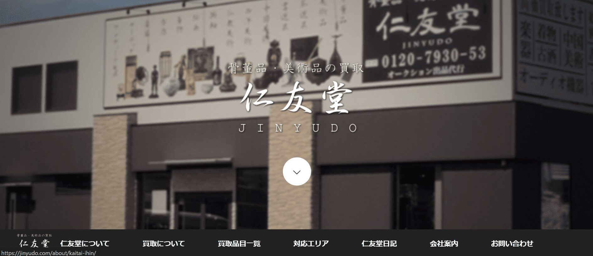 | 買取品目 | 茶道具、掛軸、象牙、珊瑚、陶磁器、刀剣、絵画、中国骨董、ペルシャ絨毯、ビスクドール、香木 「他社で断られた古い品物も相談可能」 |